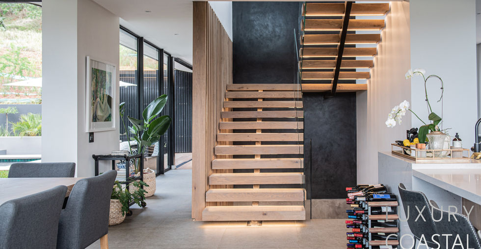 This modern three-level freestanding home is set on a large hill enjoying optimal privacy and magnificent Simbithi Eco Estate forest views.
